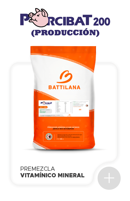 Ha sido diseñado para actuar como complemento de la ración y ayudar a lograr una adecuada ganancia de peso y acumulación de tejido magro durante las etapas de crecimiento y acabado. Porcibat 200 incluye vitaminas y minerales de alta biodisponibilidad y estabilidad, evitando que se presenten problemas de salud o producción ocasionados por aportes deficientes del alimento.