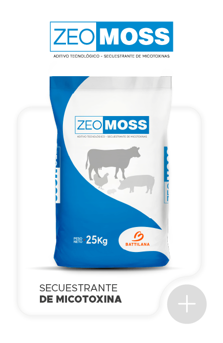 Zeomoss es un secuestrante de micotoxinas hecho sobre la base de una combinación de aluminosilicatos, fracciones de levadura y protectores hepáticos. Adsorbe las principales micotoxinas a nivel intestinal, reduciendo sus efectos nocivos y promoviendo la regeneracion hepática.